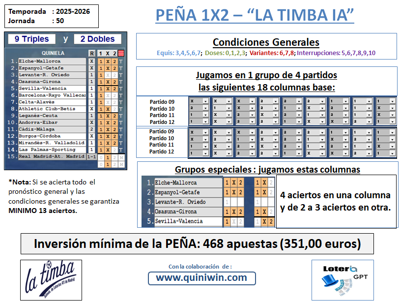 PEÑA 1X2 LA TIMBA IA J. 50: AGOTADA