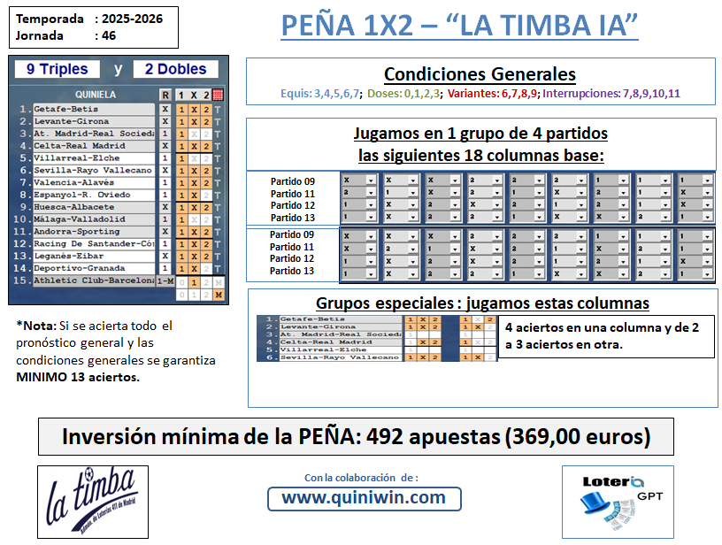 PEÑA 1X2 LA TIMBA IA J. 46:DISPONIBLE