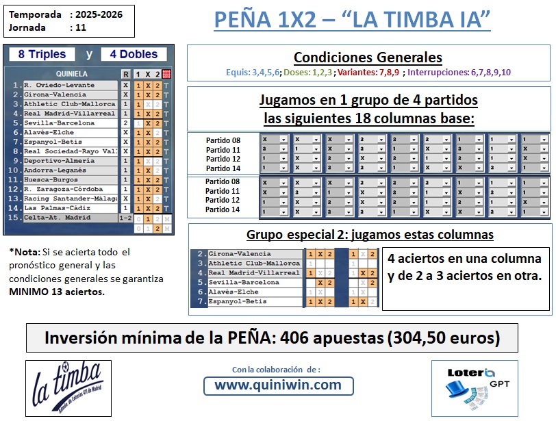 PEÑA 1X2 LA TIMBA IA J. 11: AGOTADA