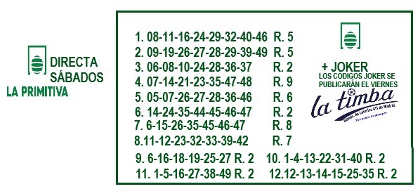 PRIMITIVA SABADO SEMANA 42: DISPONIBLE.