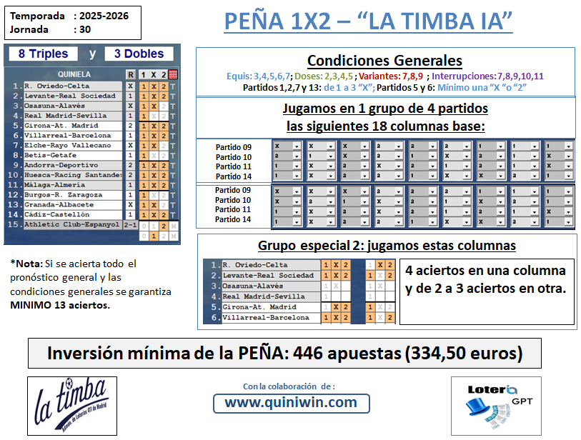 PEÑA 1X2 LA TIMBA IA J. 30:DISPONIBLE