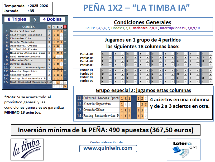 PEÑA 1X2 LA TIMBA IA J. 35 AGOTADA