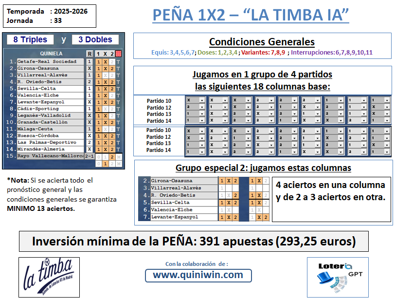 PEÑA 1X2 LA TIMBA IA J. 33 DISPONIBLE