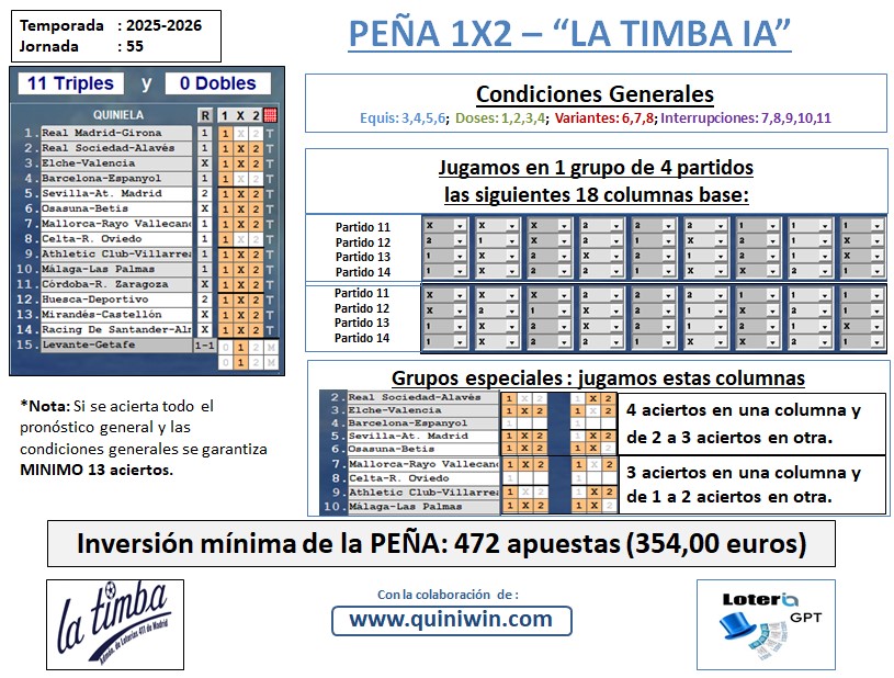 PREMIO TOTAL JORNADA 55: 52,02 € PREMIO POR PARTICIPACIÓN: 0.73 €