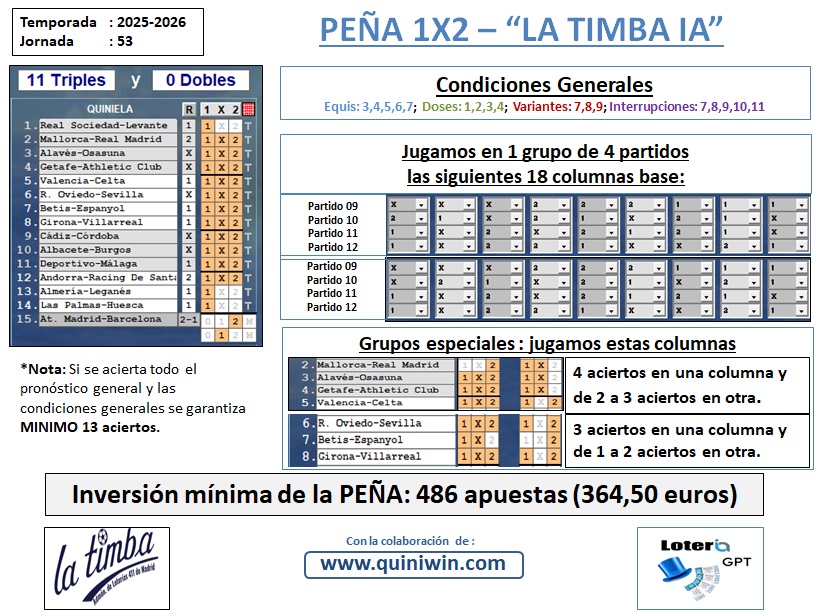 PREMIO TOTAL JORNADA 53: 1.801,44 € PREMIO POR PARTICIPACIÓN: 24,71 €