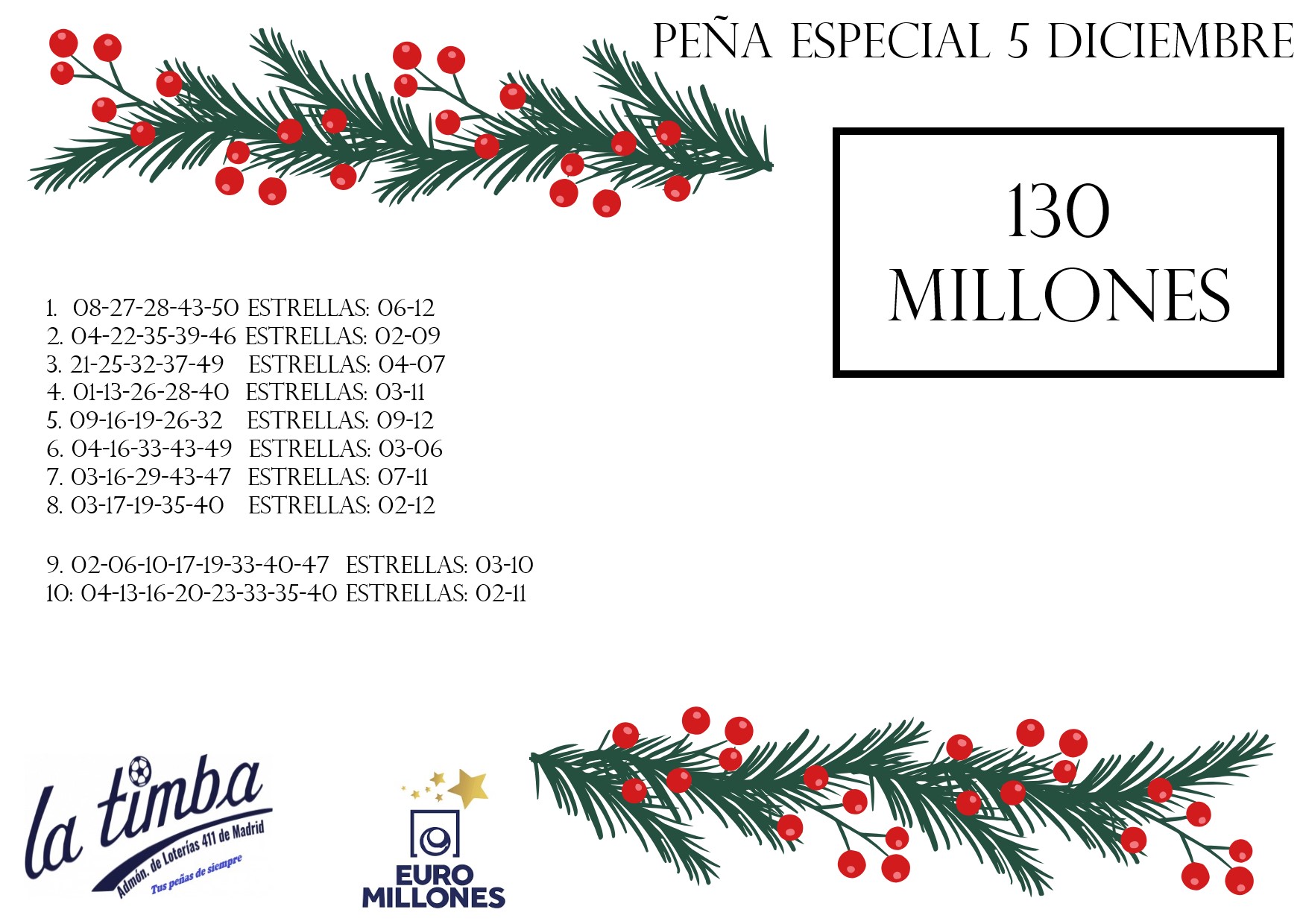 PREMIO PEÑA ESPECIAL 5 DICIEMBRE: 0,00 € PREMIO POR PARTICIPACIÓN: 0.00€